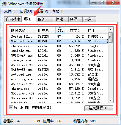 方法一、使用資源管理器關(guān)掉大量占用CPU資源的進(jìn)程